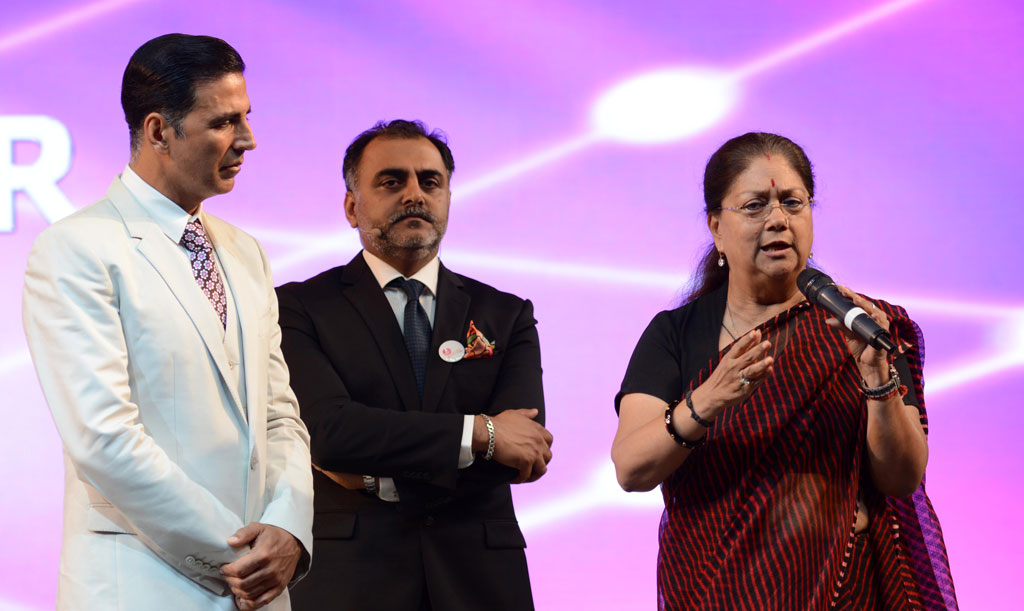 मुख्यमंत्री श्रीमती वसुन्धरा राजे ने फेस्टिवल ऑफ एजुकेशन के पहले दिन जेईसीसी सीतापुरा में अभिनेता अक्षय कुमार के साथ अप क्लोज एण्ड पर्सनल सत्र के अंतर्गत संवाद कार्यक्रम में हिस्सा लिया।