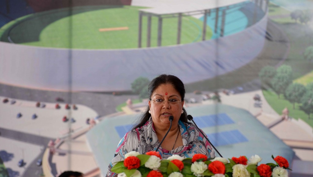 श्रीमती राजे बुधवार को उदयपुर के खेल गांव में महाराणा प्रताप इण्डोर स्टेडियम के शिलान्यास समारोह को सम्बोधित कर रही थीं। इससे पहले केन्द्रीय गृह मंत्री श्री राजनाथ सिंह तथा मुख्यमंत्री ने भूमि पूजन कर स्टेडियम की आधारशिला रखी।