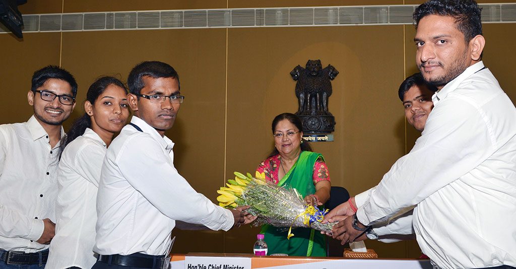 श्रीमती राजे बुधवार को मुख्यमंत्री कार्यालय में ‘‘युवा विकास प्रेरक समीक्षा एवं मार्गदर्शन’’ कार्यक्रम में आये युवा विकास प्रेरकों को सम्बोधित कर रही थीं। उन्होंने कहा कि युवाओं से इस देश को काफी उम्मीदें हैं और युवा ही नये राजस्थान का भविष्य हैं। मुख्यमंत्री ने कहा कि मुझे खुशी है कि पिछले 6 माह में युवा विकास प्रेरकों ने ‘आइडिया फैक्ट्री‘ के रूप में काम करते हुए नवाचारों के माध्यम से लोगों को जोड़ा है। वे सरकारी योजनाओं का लाभ दिलाने में सहयोगी बनकर लोगों के चेहरों पर मुस्कान लाने में सफल हुए हैं।