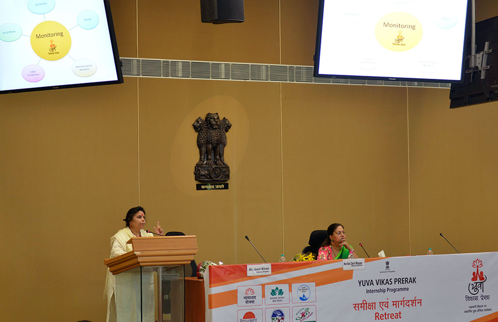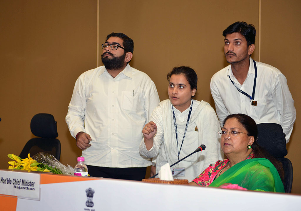श्रीमती राजे ने कहा कि युवा प्रेरक फील्ड में जाकर वस्तुस्थिति को समझते हैं साथ ही सरकार की योजनाओं की जानकारी होने के कारण वे लोगों से इसके बारे में चर्चा कर उनसे फीडबैक भी आसानी से ले पाते हैैं। मुझे यह जानकर खुशी है कि युवा प्रेरकों ने लीक से हटकर सोच रखते हुए कई अभिनव कार्य किये हैं जिनमें डवलपमेंट डायलॉग, बाल विवाह रोकने, पारदर्शिता से राशन वितरण, बिजली छीजत में कमी लाने एवं श्रमिक कार्ड पंजीयन जैसे कार्यक्रम शामिल हैं। डवलपमेंट डायलॉग प्रोग्राम के माध्यम से स्कूल एवं कॉलेजों के विद्यार्थियों के साथ चर्चा का फायदा सरकार की योजनाओं के प्रभावी ढंग से धरातल पर लाने में मिलेगा।