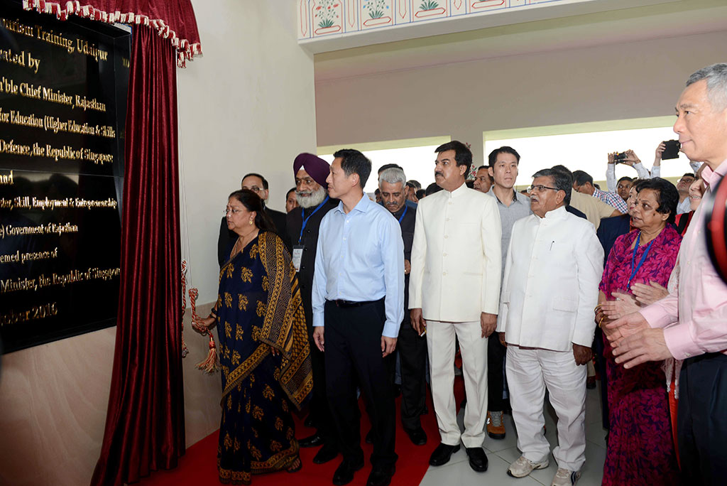 इसके बाद सिंगापुर के प्रधानमंत्री श्री ली सीएन लूंग की उपस्थिति में मुख्यमंत्री श्रीमती वसुंधरा राजे, सिंगापुर के कार्यवाहक उच्च शिक्षा, कौशल विकास एवं वरिष्ठ रक्षा राज्यमंत्री श्री आेंग ई कुंग ने मोहनलाल सुखाड़िया विश्वविद्यालय परिसर में ‘सेंटर ऑफ एक्सीलेंस फॉर टूरिज़्म ट्रेनिंग’ के नवनिर्मित भवन का लोकार्पण किया।