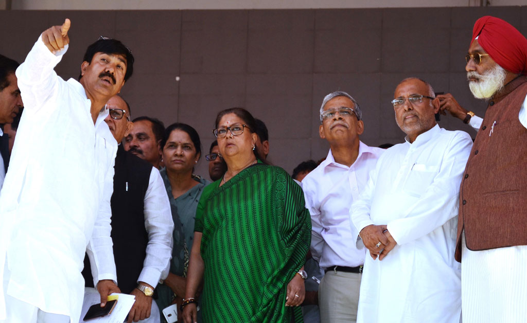 श्रीमती राजे ने आयोजन व्यवस्था का बारीकी से निरीक्षण किया। सार्वजनिक निर्माण तथा परिवहन मंत्री श्री यूनुस खान ने मुख्यमंत्री को पाण्डाल व्यवस्था, बैठक व्यवस्था एवं आयोजन की अन्य तैयारियों के बारे में जानकारी दी।