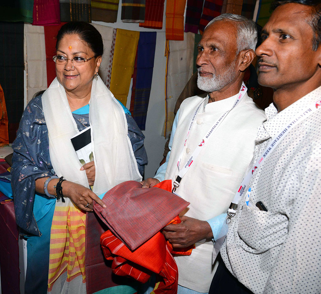 मुख्यमंत्री श्रीमती वसुन्धरा राजे ने कहा है कि राजस्थान का खादी फेब्रिक और बुनकर नये-नये उत्पादों और डिजाइनों के साथ देश-दुनिया में प्रदर्शित हो रहे हैं और अपनी अलग पहचान बना रहे हैं। उन्होंने कहा कि यह ‘राजस्थान हैरिटेज वीक’ की सफलता है कि बड़ी संख्या में लोग, विशेषकर युवा, राजस्थान की खादी के प्रति आकर्षित हो रहे हैं।