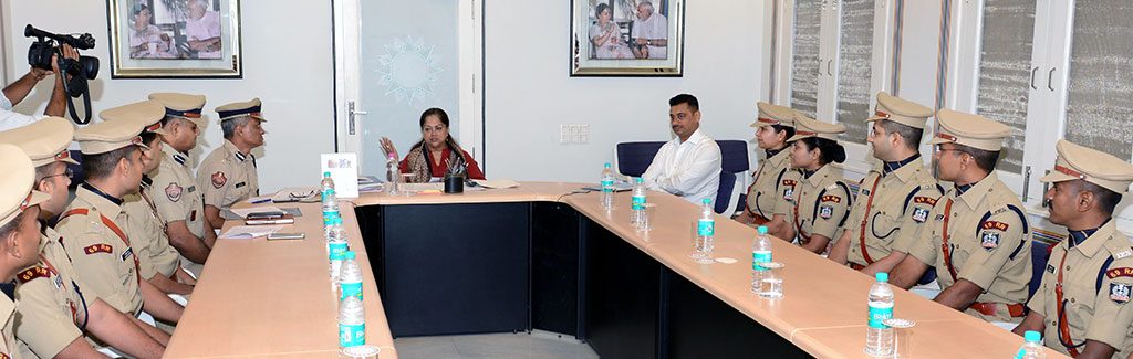 मुख्यमंत्री श्रीमती वसुन्धरा राजे से मंगलवार को मुख्यमंत्री निवास पर वर्ष 2016 बैच के आईपीएस प्रोबेशनर्स ने मुलाकात की। श्रीमती राजे से यह उनकी शिष्टाचार भेंट थी।