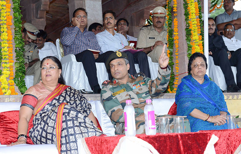मुख्यमंत्री श्रीमती वसुंधरा राजे ने स्वतंत्रता दिवस की पूर्व संध्या पर कोटा के किशोर सागर तालाब में भारतीय सेना के बाढ़ राहत व बचाव कार्य के अनूठे प्रदर्शन को देखा एवं इसकी सराहना की। सेना के जांबाजों ने आपदा के समय लोगों को सुरक्षित बाहर निकालने के कौशल का साहसिक प्रदर्शन किया ।