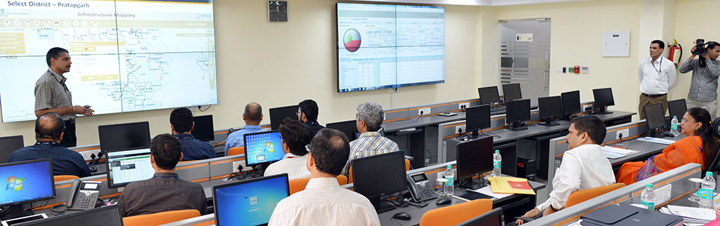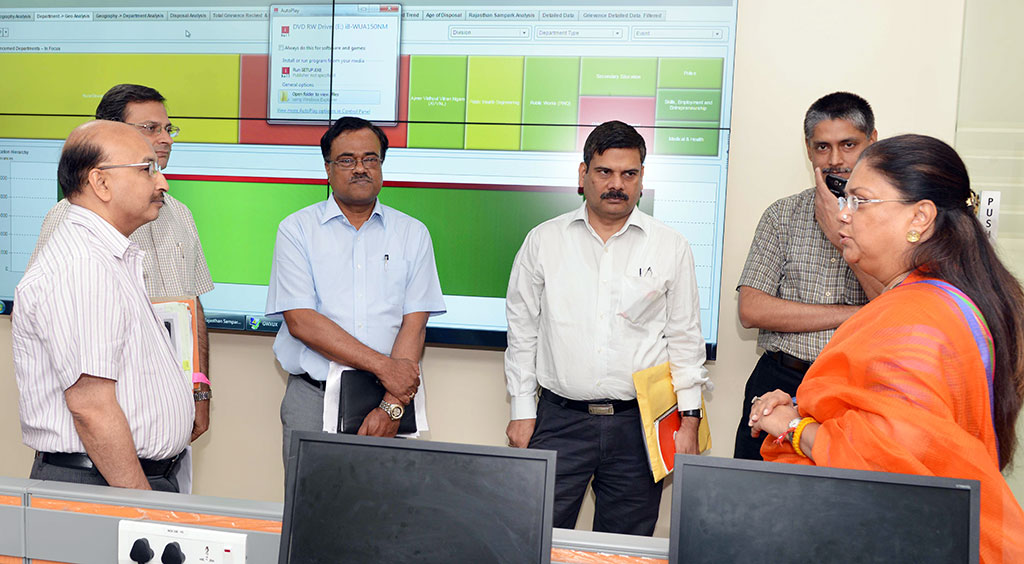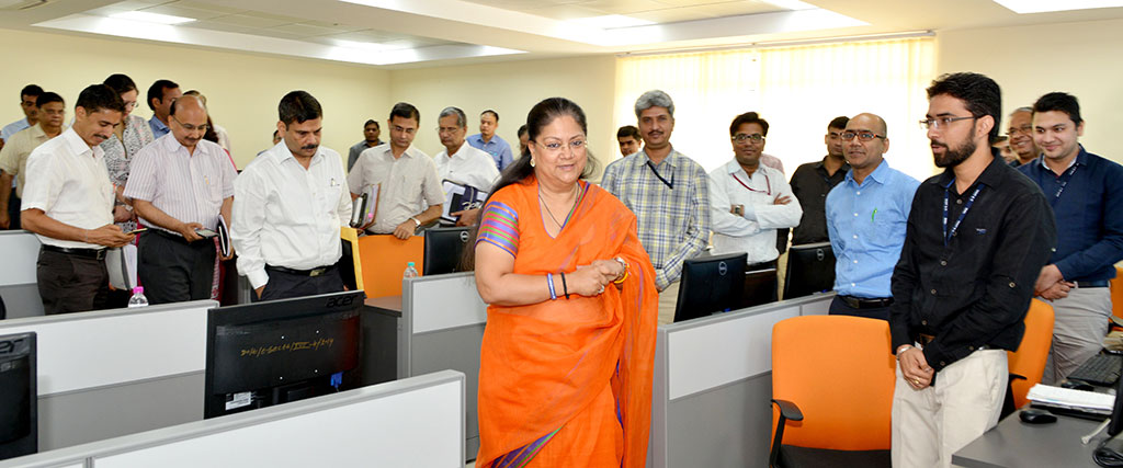 मुख्यमंत्री श्रीमती वसुन्धरा राजे ने मंगलवार को आयोजना भवन स्थित स्टेट डेटा सेंटर जाकर आधारभूत सुविधाओं की मेपिंग का प्रस्तुतीकरण देखा और इसकी समीक्षा कर अधिकारियों को जरूरी दिशा निर्देश दिये।