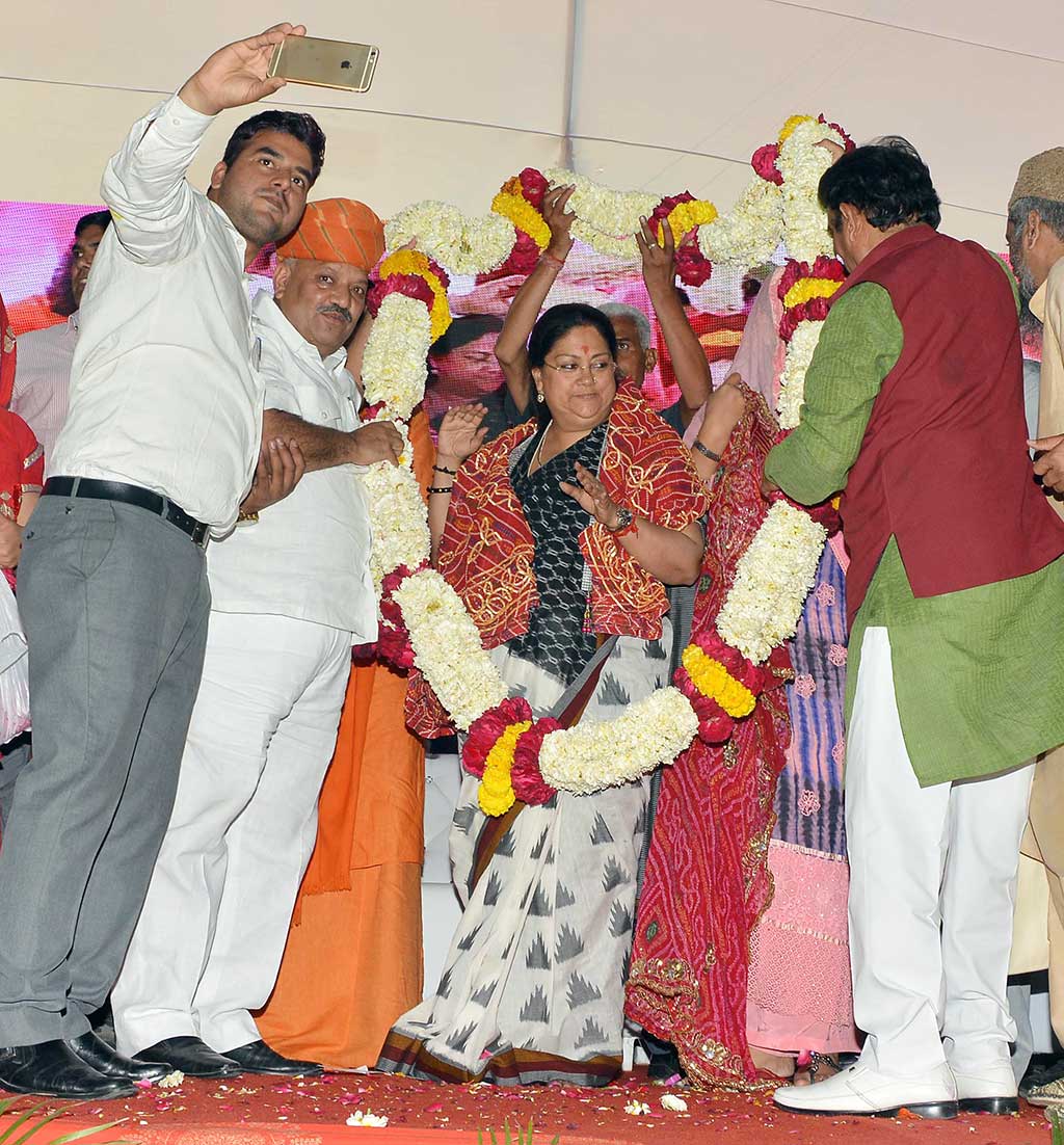 मुख्यमंत्री श्रीमती वसुन्धरा राजे ने कहा कि प्रदेश को अग्रणी बनाने के लिए सभी की भागीदारी जरूरी है। जब 36 की 36 कौम मिलकर प्रदेश में सौहार्दपूर्ण वातावरण में कंधे से कंधा मिलाकर साथ चलेंगी तो प्रदेश को अव्वल बनाने का हमारा सपना जरूर पूरा होगा।
