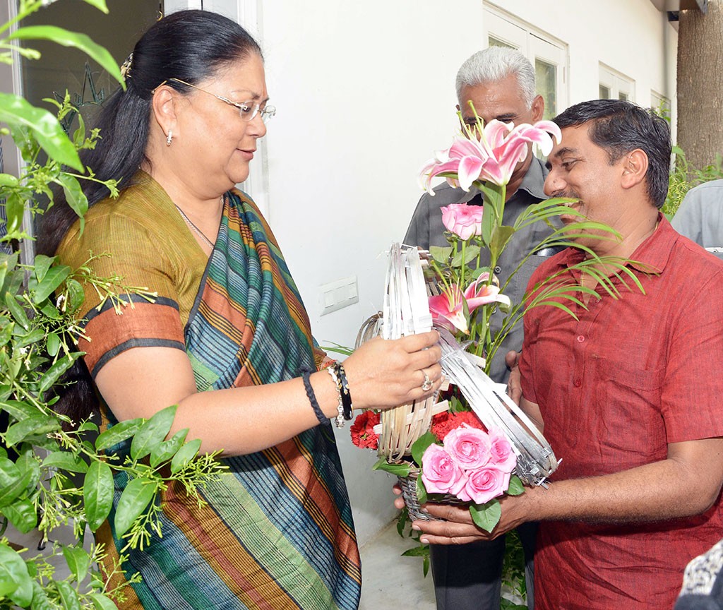 मुख्यमंत्री श्रीमती वसुन्धरा राजे से शनिवार को भाजपा के नवनिर्वाचित जयपुर शहर जिलाध्यक्ष श्री संजय जैन ने मुलाकात की।