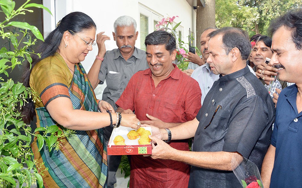मुख्यमंत्री ने श्री जैन को पुनः अध्यक्ष चुने जाने पर उन्हें मिठाई खिलाकर शुभकामनाएं दी। इस अवसर पर समाजसेवी श्री सुरेश पाटोदिया, भाजपा मण्डल अध्यक्ष श्री गोवर्धन शर्मा, अरूण शर्मा, शंकर शर्मा, ब्रह्म कुमार सैनी, भगवत सिंह देवल एवं प्रमुख कार्यकर्ता मौजूद थे।
