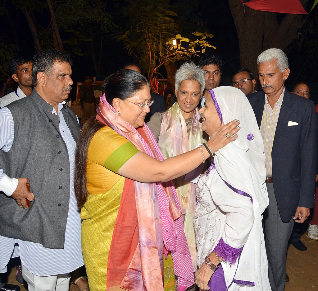 श्रीमती राजे गुरुवार शाम को होटल क्लाक्र्स आमेर में सूक्ष्म, लघु एवं मध्यम उद्योग विभाग द्वारा आयोजित ‘राजस्थान हेरिटेज वीक’ के तहत ‘हैण्डमेड इन राजस्थान’ प्रदर्शनी एवं फैशन शो में मीडिया से बातचीत कर रही थीं।