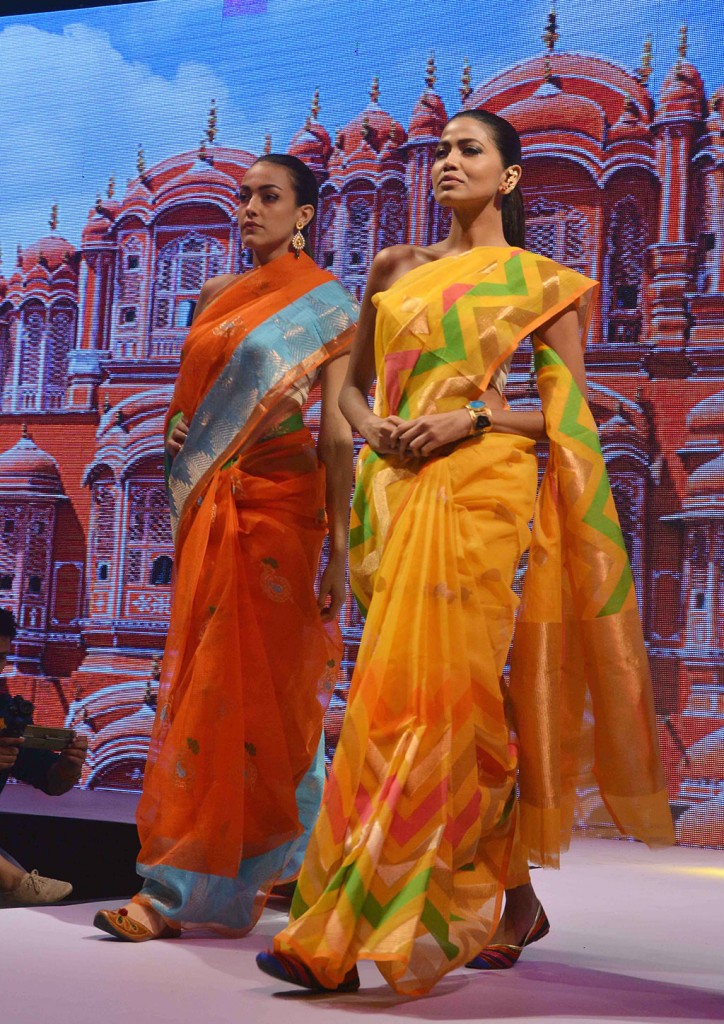फैशन शो में मशहूर बांग्लादेशी डिजाइनर बी.बी. रसेल, नसरूद्दीन अंसारी, मोहम्मद साबिर, संजय गर्ग, जेसन एण्ड अंशू, निधि अग्रवाल और ऋचा जुल्का के ब्राण्ड कारयाह, श्रीलंका के अजय वीर सिंह, पल्लवी जयपुर सहित राजस्थान के नामी-गिरामी डिजाइनरों के वस्त्र उत्पादों का प्रदर्शन किया गया। मुख्यमंत्री ने डिजाइनरों और हस्तशिल्पकारों का ताली बजाकर उत्साहवर्धन किया। इससे पहले उन्होंने खादी वस्त्रों और अन्य हस्तशिल्प उत्पादों की प्रदर्शनी का अवलोकन किया तथा खरीददारी की।
