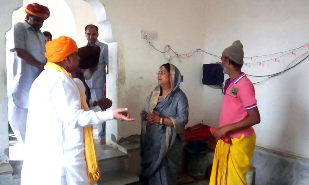श्रीमती राजे ने लोक मान्यता को उदृत करते हुए कहा कि किसान परिवार से सम्बन्ध रखने वाले श्री भगत के भक्ति में लीन हो जाने पर स्वयं भगवान को ही उनकी खेती का काम करना पड़ा और पूरे क्षेत्र में भरपूर फसल पैदा हुई। उन्होंने लोगों का आह्वान किया कि वे भी भगवान में आस्था रखें और कड़ी मेहनत करें ताकि हमारा राज्य खुशहाल और सम्पन्न बने।
