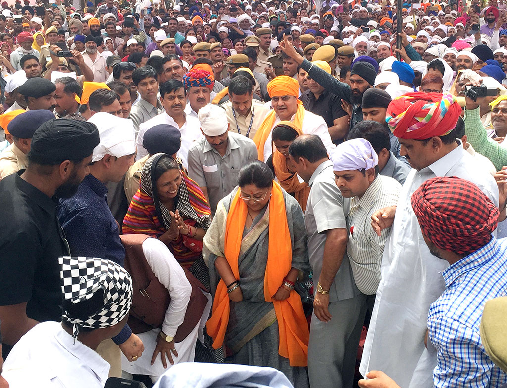 श्रीमती राजे ने कहा कि राज्य सरकार प्रदेश को विकास के रास्ते पर आगे बढ़ाने का काम कर रही है। उन्होंने कहा कि राष्ट्रीय राजमार्ग-12 पर भरनी से धुआंकलां तक 7 किलोमीटर लम्बी 7 मीटर चैड़ी सड़क बनाई जाएगी, ताकि यहां आने वाले श्रद्धालुओं को सहुलियत हो सके। उन्होंने ग्राम धुआंकलां से संत धन्नाभगत के पेनोरमा तक डेढ किलोमीटर लम्बी सड़क तथा दूदू से छान तक 104 किलोमीटर लम्बी सड़क का निर्माण शीघ्र शुरू किया जायेगा।