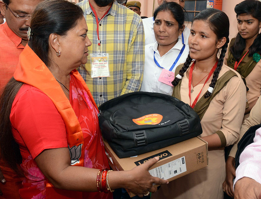श्रीमती राजे ने श्रीमाधोपुर में जनसंवाद से पहले इसी वर्ष शाला पूर्व शिक्षा के लिए आंगनबाड़ी में प्रवेश लेने वाली 10 नन्ही-नन्नी बालिकाओं से मुलाकात की। उन्होंने बच्चियों को खिलौने और टॉफियां दीं। मुख्यमंत्री ने तीन मेधावी छात्राओं को स्कूटी तथा पांच छात्राओं को लैपटॉप भी वितरित किए।
