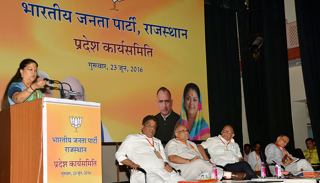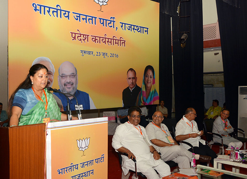 भाजपा के प्रदेशाध्यक्ष अशोक परनामी ने कहा है कि श्रीमती वसुन्धरा राजे के नेतृत्व में प्रदेश तेजी से आगे बढ़ रहा है। राजे सरकार के ढ़ाई साल विकास की दृष्टि से स्वर्णकाल है। उन्होंने कहा कि राजे के नेतृत्व में विधानसभा, लोकसभा, नगरपालिका, पंचायतराज और राज्यसभा चुनाव में भाजपा को एतिहासिक सफलता मिलीं है। अभी 10 में से 8 राज्यसभा सांसद भाजपा के हैं। 2018 में होने वाले राज्यसभा चुनाव में भाजपा के 10 में से 10 सांसद हो जायेंगे। परनामी ने कहा कि राष्ट्रीय कार्यसमिति की बैठक के 7 दिवस के अंदर जिस तरह से प्रदेश कार्यसमिति की बैठक होना अनिवार्य है, उसी तरह प्रदेश कार्य समिति की बैठक के 7 दिवस के अंदर-अंदर जिला कार्य समिति की बैठक होना आवश्यक है। जिला कार्य समिति की बैठक के 7 दिवस में मण्डल कार्य समिति की बैठक किया जाना नितान्त आवश्यक है।