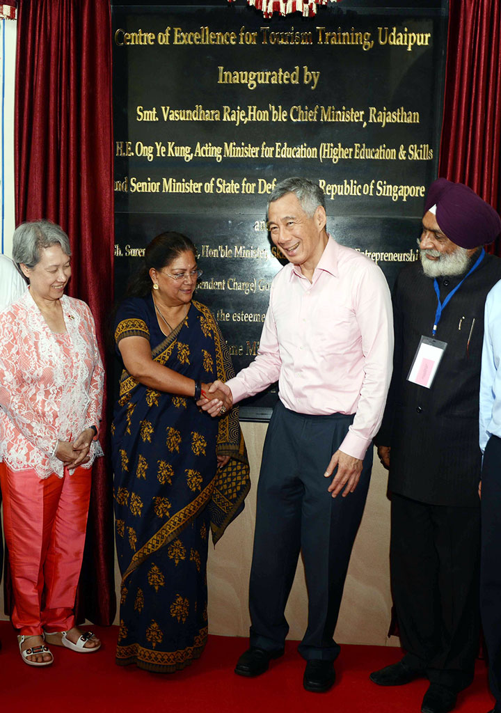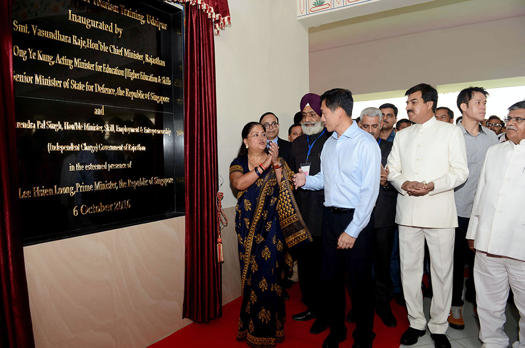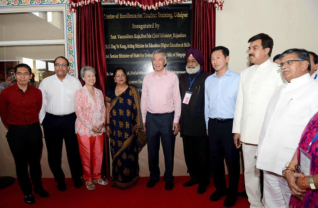 इसके बाद सिंगापुर के प्रधानमंत्री श्री ली सीएन लूंग की उपस्थिति में मुख्यमंत्री श्रीमती वसुंधरा राजे, सिंगापुर के कार्यवाहक उच्च शिक्षा, कौशल विकास एवं वरिष्ठ रक्षा राज्यमंत्री श्री आेंग ई कुंग ने मोहनलाल सुखाड़िया विश्वविद्यालय परिसर में ‘सेंटर ऑफ एक्सीलेंस फॉर टूरिज़्म ट्रेनिंग’ के नवनिर्मित भवन का लोकार्पण किया।