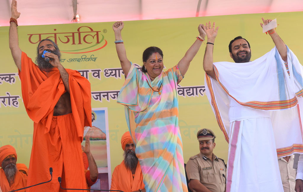 प्रदेश की मुख्यमंत्री श्रीमती वसुन्धरा राजे ने कहा है कि राजस्थान ने योग को अपनाकर स्वस्थ जीवन के रास्ते पर चलने का काम शुरू कर दिया है। पूरे प्रदेश में बड़ी संख्या में लोग योग करने लगे हैं। उन्होंने कहा कि योग देश-दुनिया में जिस तरीके से अब फैला है उसका श्रेय स्वामी रामदेव को जाता है।