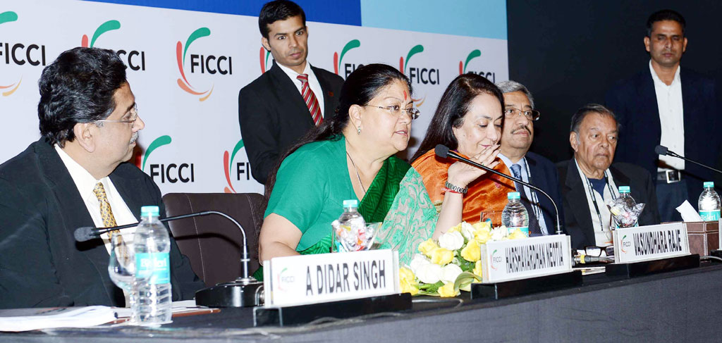 श्रीमती राजे बुधवार को जयपुर में आयोजित फिक्की की राष्ट्रीय कार्यकारिणी की बैठक को सम्बोधित कर रही थीं। उन्होंने कहा कि हमारा ध्यान पर्यटन के साथ सामाजिक सुरक्षा से जुड़े क्षेत्रों प्रमुखतः स्वास्थ्य एवं शिक्षा के समुचित विकास पर है और इसमें पीपीपी मोड पर कार्य करने की विपुल संभावनाएं हैं। उन्होंने कहा कि ‘राजस्थान निवेश प्रोत्साहन योजना’ एवं ‘सौर ऊर्जा नीति’ के बाद अब राज्य सरकार शीघ्र ही नई ट्यूरिज्म पाॅलिसी, मिनरल्स एण्ड माइन्स पाॅलिसी, आईटीईएस पाॅलिसी लाकर राज्य में निवेश के लिए अनुकूल माहौल तैयार कर रही है।