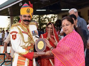 श्रीमती राजे ने बीएसफ के ऊंट दल द्वारा दी गई प्रस्तुतियों पर तालियां बजाकर सीमा प्रहरियों की हौसला अफजाई की। कार्यक्रम के बाद श्रीमती राजे पोलो ग्राउण्ड मैदान में जाकर बीएसएफ जवानों से भी मिलीं।